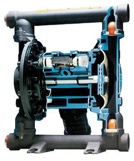 氣動雙隔膜泵通過行程機械拉動吸入隔膜的移動氣動雙隔膜泵的內(nèi)板與對準的驅(qū)動柱塞發(fā)生接觸,移動導向閥芯。導向閥激活后,便向主定向氣閥的另一端發(fā)出壓力信號,氣動雙隔膜泵使壓縮空氣方向改向內(nèi)部腔室的另一側如此反復運動完成介質(zhì)的連續(xù)輸送。